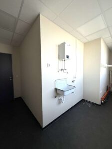 Die Fläche verfügt über zwei getrennte WC-Anlagen, einen Personalraum sowie einen Technik- und Büroraum. Eine vorhandene Thekenanlage kann bei Bedarf weiterhin genutzt werden und eignet sich ideal für Empfangs- oder Servicebereiche. Zudem sorgt eine vorhandene Klimaanlage für ein angenehmes Raumklima. Vor dem Objekt stehen insgesamt 12 Außenstellplätze zur Verfügung, wodurch sowohl Mitarbeiter als auch Kunden komfortable Parkmöglichkeiten haben.